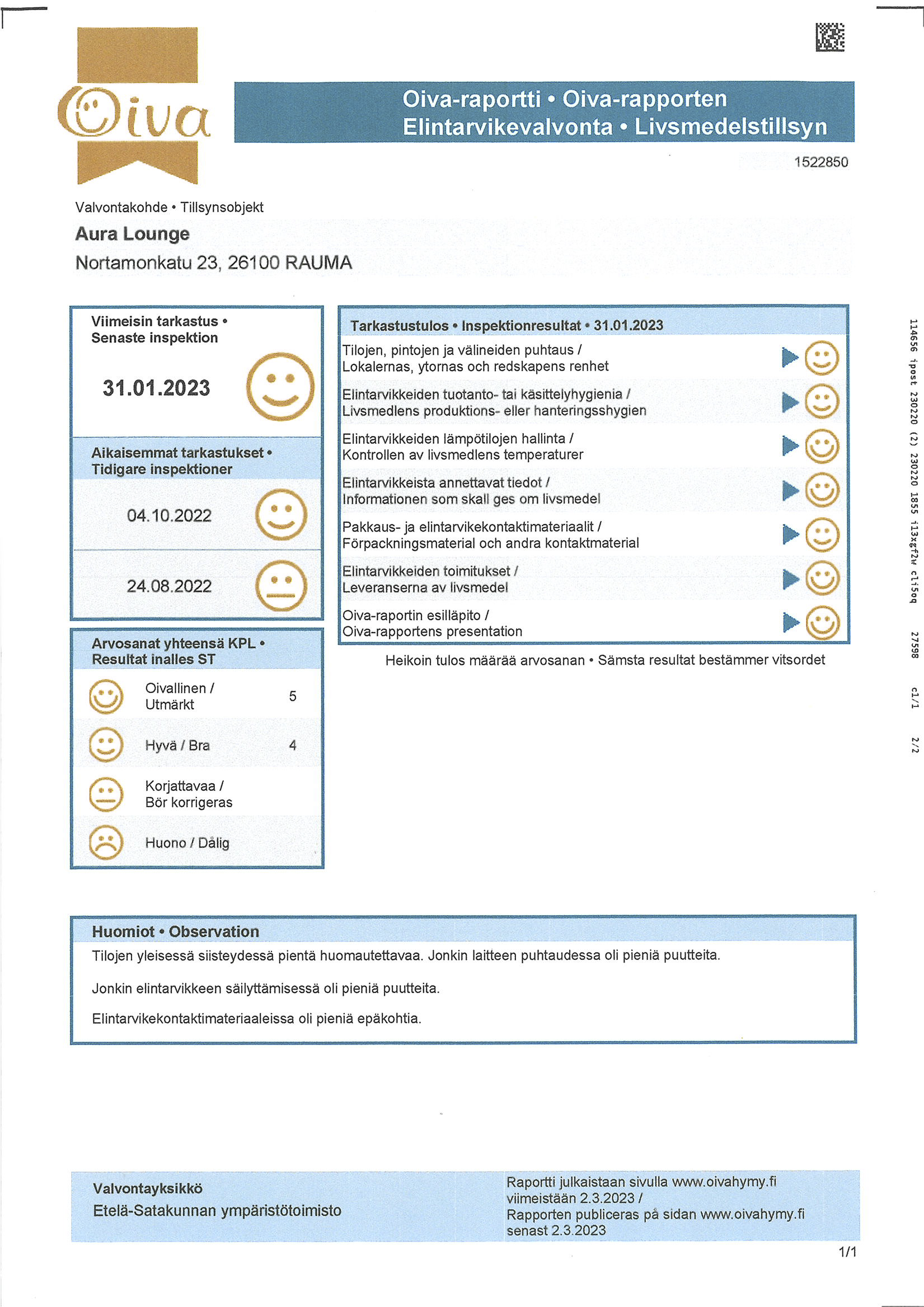 LOUNASLISTA RAVINTOLA AURA LOUNGE VIIKOLLE 51/2025